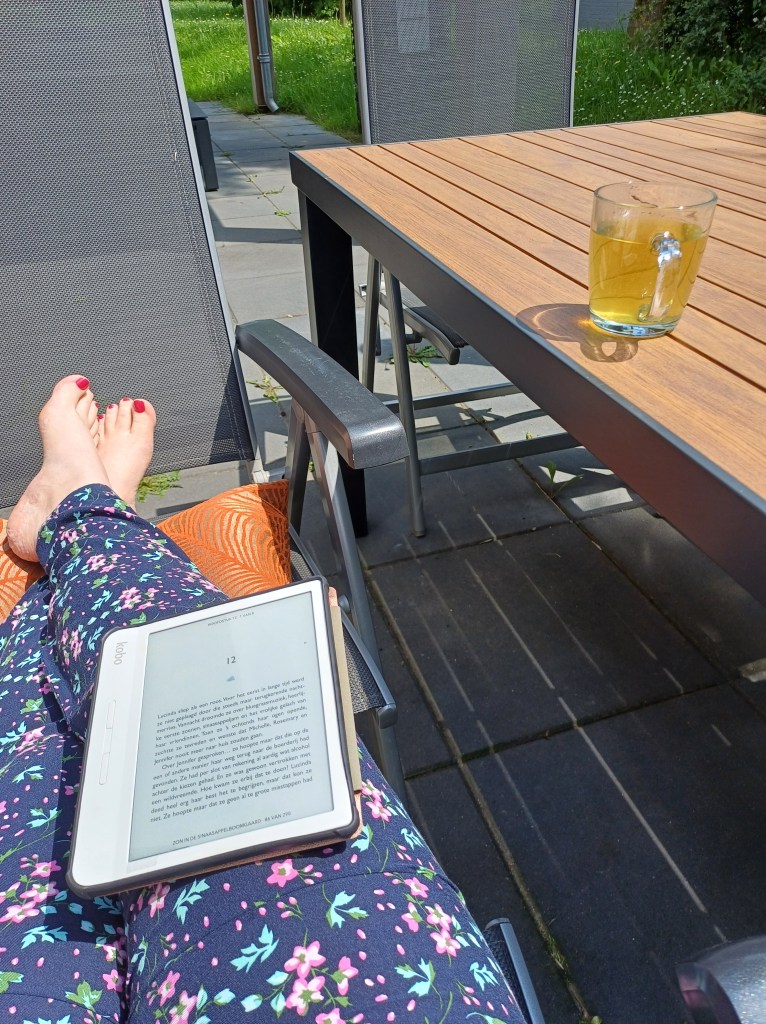 Ik had het al ingecalculeerd om op donderdag een rustdag te houden. In de voormiddag genoot ik nog van een bubbelbadje en in de namiddag was het mooi weer om buiten op het terras te zitten lezen. Helaas waren er geen tuinstoelkussens beschikbaar, dus ik nam enkele kussens van binnen mee.