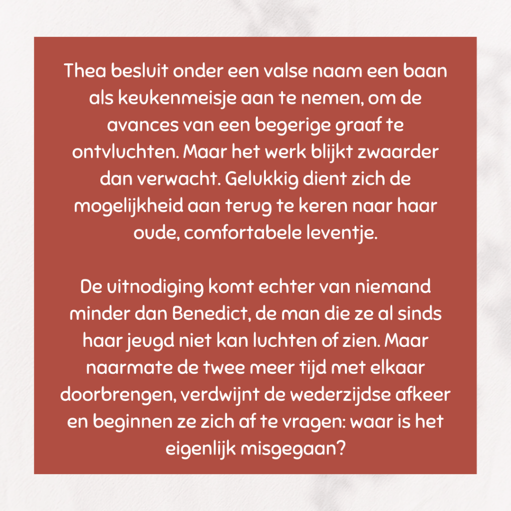 Hij reist heel Engeland door om Thea te vinden. Thea is enkele maanden geleden van huis vertrokken en is sindsdien niet meer te vinden. Met veel geduld vindt Benedict Thea in een villa waar ze als keukenmeid aan de slag is. Thea is echter niet zo blij dat ze gevonden is. Ze haat Benedict. Uiteindelijk lukt het Benedict om Thea te overtuigen om mee naar huis te gaan en haar comfortabele leventje terug op te pakken. Maar de meerdaagse rit naar huis verloopt niet zonder slag of stoot en ook thuis is het niet rozengeur en maneschijn…
