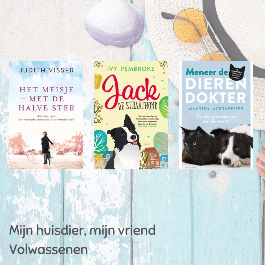 Ik heb het thema breder getrokken naar ‘dieren’, zeker in de leeftijdscategorie 15-18 jaar. Daar vond ik werkelijk niets over huisdieren. Zelfs ‘dieren’ was een zoekterm met een heel mager resultaat. Ik ben voor die categorie dus gaan kijken bij de volwassenen. Uiteindelijk is het me gelukt om drie boeken te vinden die geschikt kunnen zijn voor jonge volwassenen.