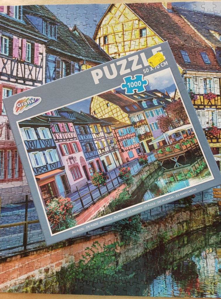 Ik heb deze puzzel in de kringloop gekocht. Volgens mij is hij al heel oud, want ik vind ‘m niet meer terug op het internet toen ik op zoek was naar de naam. De puzzelstukjes kwamen ook redelijk makkelijk los.