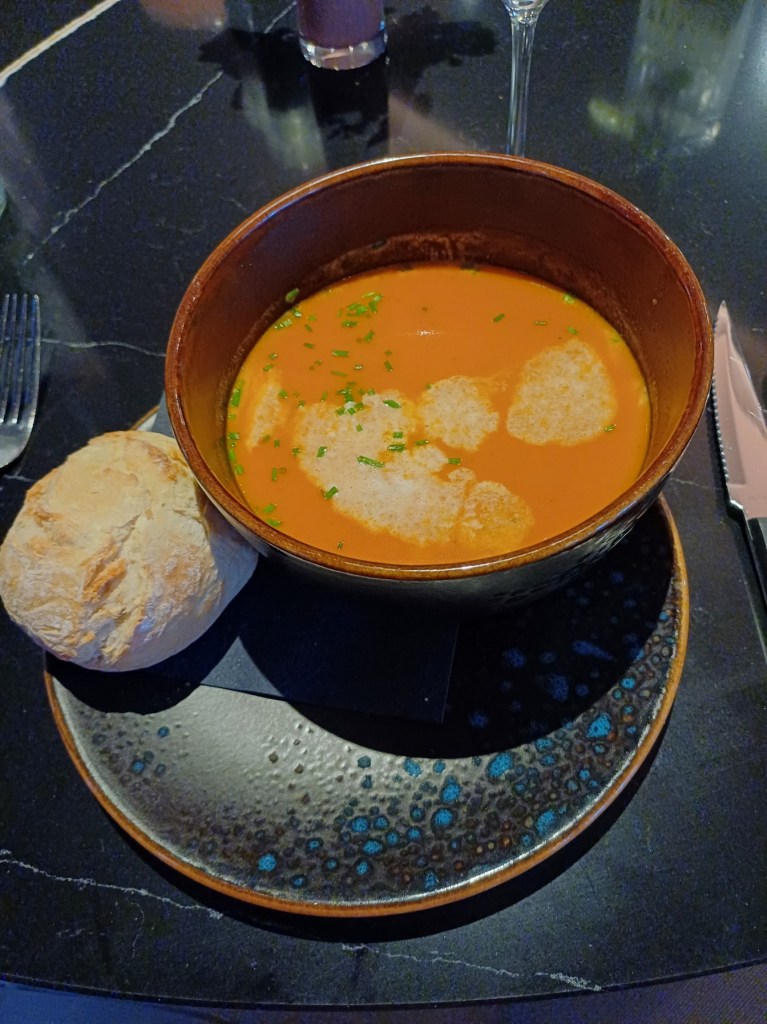 Het laatste avondmaal. Het was heel lekker. Het enigste minpunt vond ik de stoelen. Het waren middelhoge stoelen met armleuningen en door het tapijt was het heel moeilijk om je stoel onder de tafel te schuiven.