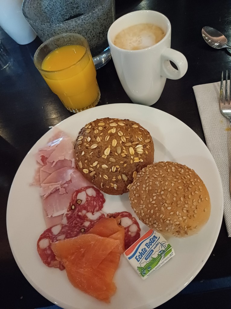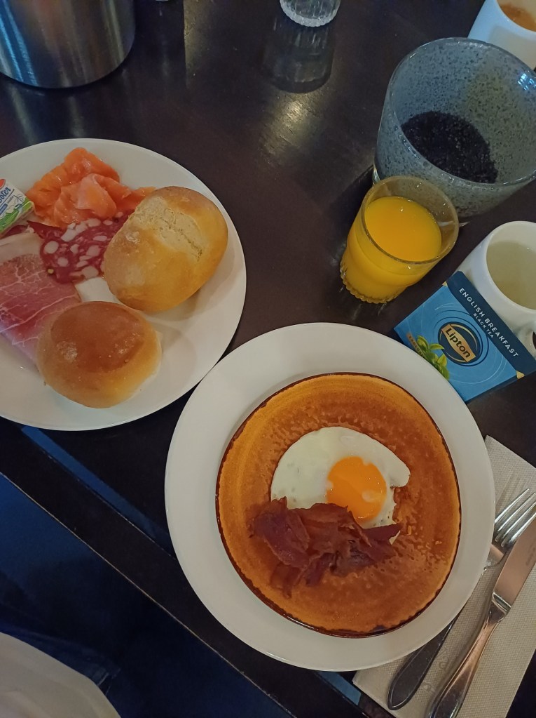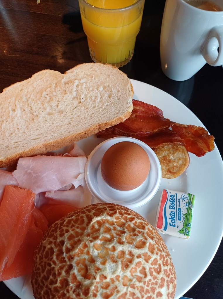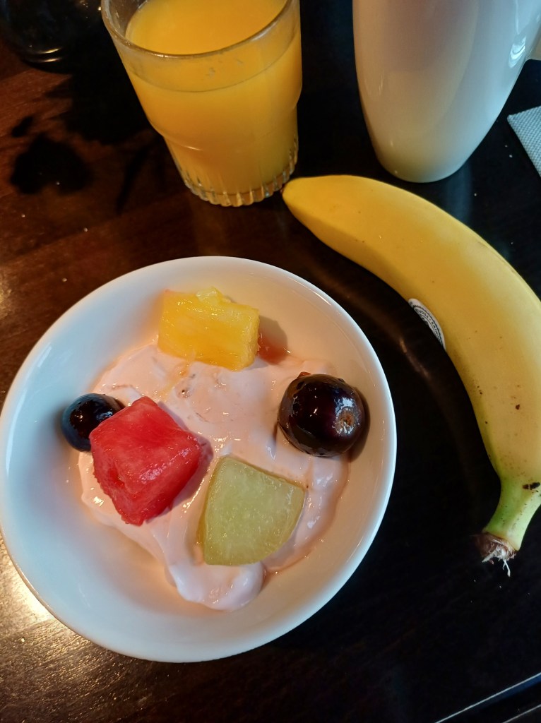 Eén van de grote voordelen van een hotel zijn de hotelontbijtjes. Ik hou ervan! Met dit ontbijt kom ik toe tot het avondmaal.