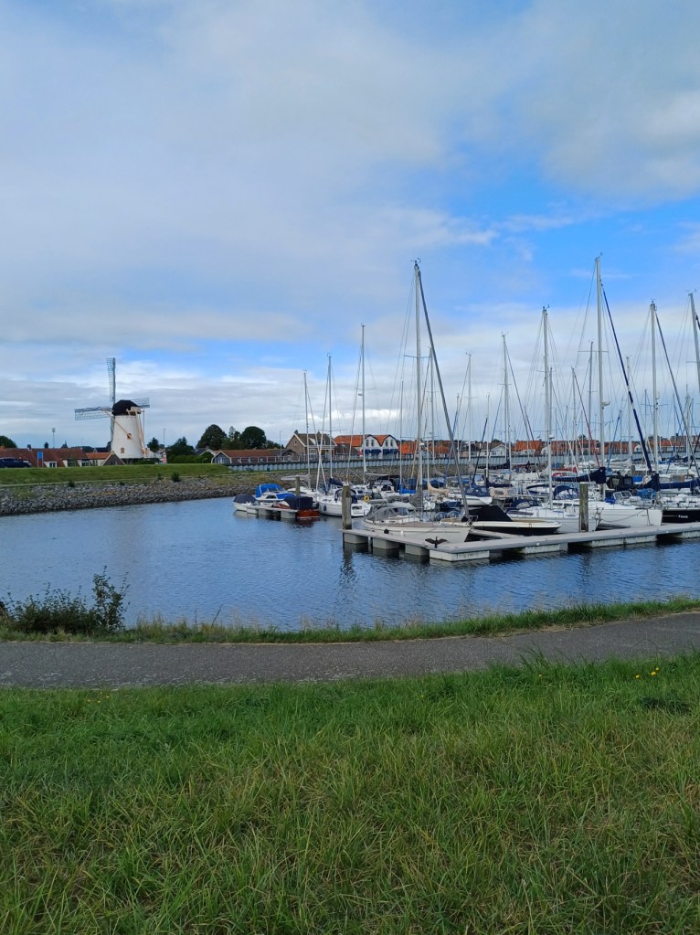 Na het ontbijt checkten we uit en reden nog even naar Wemeldinge. We wandelden wat rond in de jachthaven. Niet heel spectaculair, gewoon een jachthaventje.