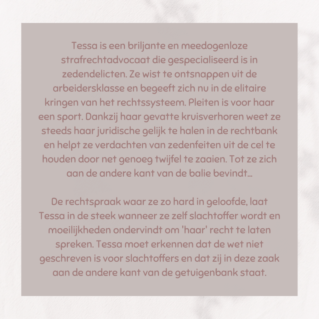 Tessa Ensler is strafpleiter in Londen. Ze fileert de getuigen in de rechtbank tijdens het kruisverhoor. Het is hetgeen waar ze hard voor gewerkt heeft. Ze komt namelijk uit een gebroken gezin uit een arme wijk. Haar vader was gewelddadig en verliet het gezin waardoor moeder er alleen voor kwam te staan met Tessa en haar oudere broer Johnny. Haar broer kwam ook al in contact met het gerecht, waardoor ze alleen nog maar meer gesterkt is in haar strijd tegen gerechtigheid. Maar dan wordt ze zelf slachtoffer van een seksueel misdrijf en staat ze aan de andere kant in de rechtzaal. Zal nu ook de gerechtigheid geschieden?