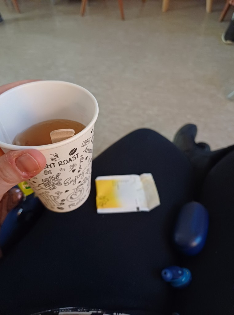 Met een bekertje thee en een luisterboek zat ik klaar voor de mogelijke bijwerkingen. Die niet kwamen. Ik kreeg geen enkele bijwerking. Ohja, de koffie heb ik nog niet geproefd, want mijn maag lag overhoop door de zenuwachtigheid en dan verdraag ik geen koffie. 😉