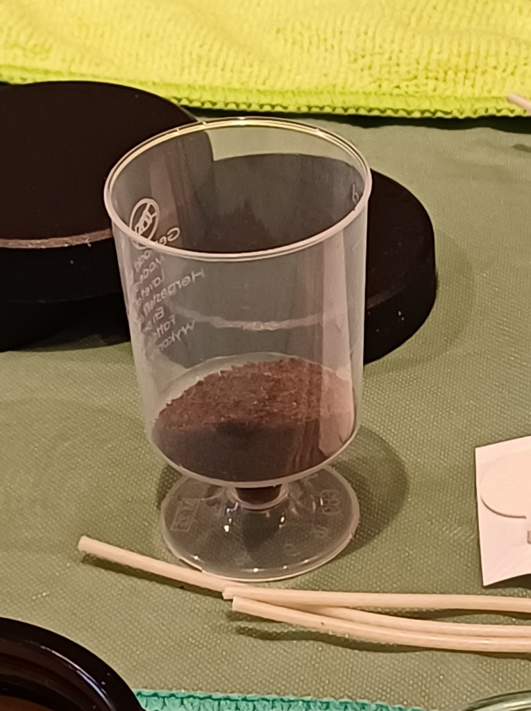 Het eerste wat je moest doen, was de sojawas afwegen. Sojawas is een milieu- en gezondheidsvriendelijker alternatief voor paraffine, de grondstof die normaal gebruikt wordt bij het maken van kaarsen. Na het afwegen wordt de was au bain-marie gesmolten.