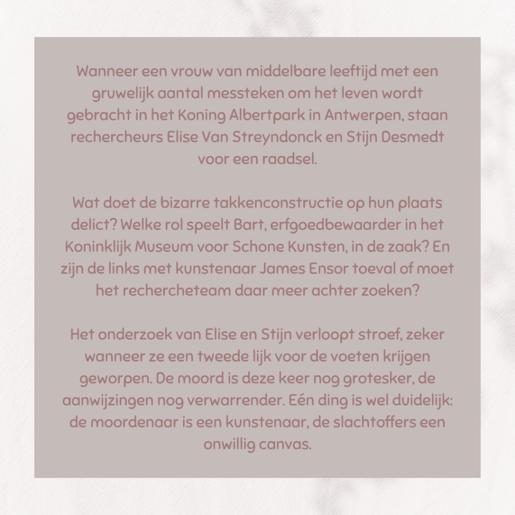 Een thriller waarin heel wat gebeurt. De Vriese en Durnez rijden heel België door en jagen een seriemoordenaar na. Een seriemoordenaar die gruwelijke dingen doet met zijn slachtoffers.