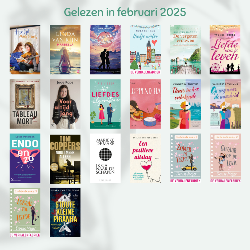 In februari heb ik weer veel gelezen. Ik heb zowaar een kleine week zelf kunnen lezen. Nadien was het weer gedaan. Maar gelukkig zijn er altijd luisterboeken. 🙂