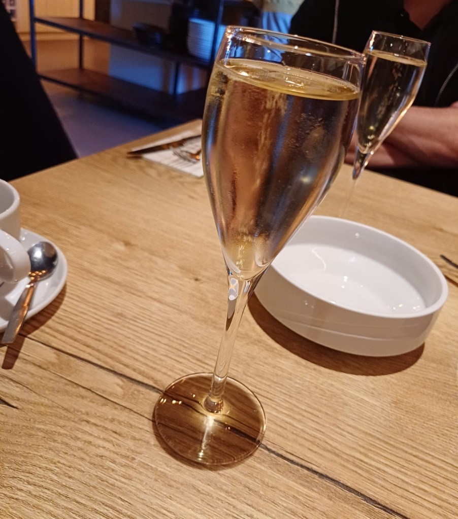 Beginnen met een glaasje bubbels. Ik drink amper alcohol, maar zo af en toe vind ik het wel lekker.