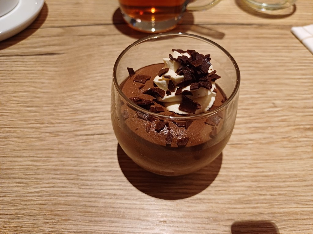 Chocolademousse. Er was ook rijstpap, waar ik ook wel zin in had, maar mijn buikje niet meer.