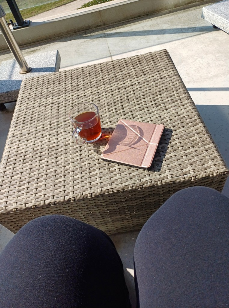 Na een grijze winter is het zonnetje daar. Af en toe heb ik even kunnen genieten op mijn terras.