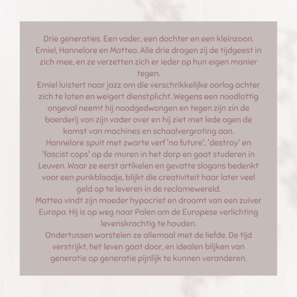 Dit is een verhaal over drie generaties heen. Het eerste verhaal gaat over Emiel. Het tweede verhaal gaat over zijn dochter Hannelore. En het derde verhaal gaat over haar zoon en dus Emiels kleinzoon Matteo.