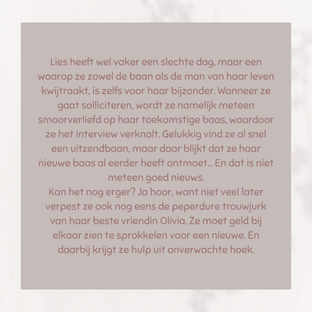 Een mooi feelgoodverhaal over een jonge vrouw met een aangeboren hartafwijking. Het is gebaseerd op de eigen ervaring van Marieke zelf, die ook hartpatiënt is. De hoofdpersonages zijn fijne mensen en ik zou ook wel zo´n twee bodyguards (Mark en Jasper) willen. 😉