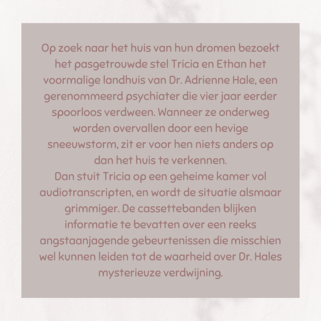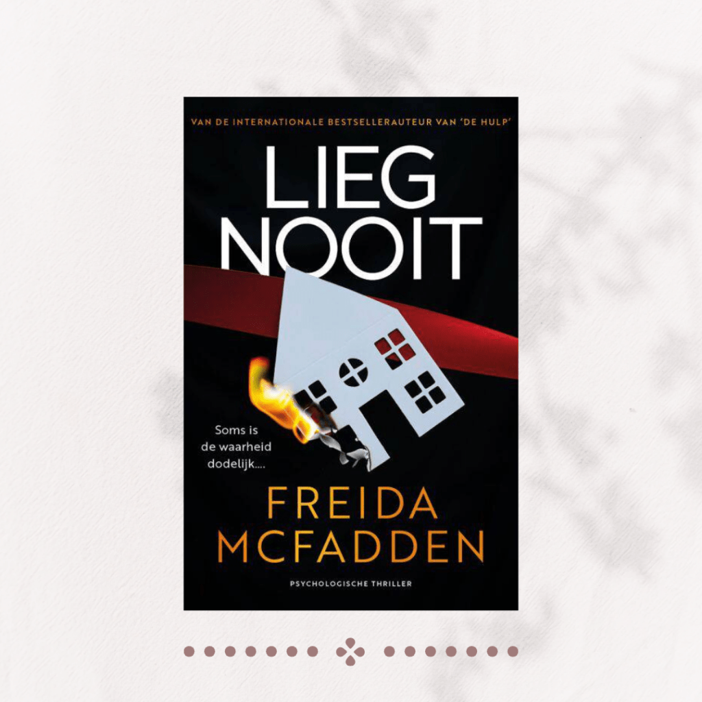 1. Wat een heerlijke lees- en luistermaand weer! Ik heb trouwens bij Freida McFadden hetzelfde bij de laatste boeken die ik van haar las. Ik vond ‘De hulp’ heel goed, maar inmiddels ken ik het kunstje of zo en vind ik de boeken niet meer zo geweldig.