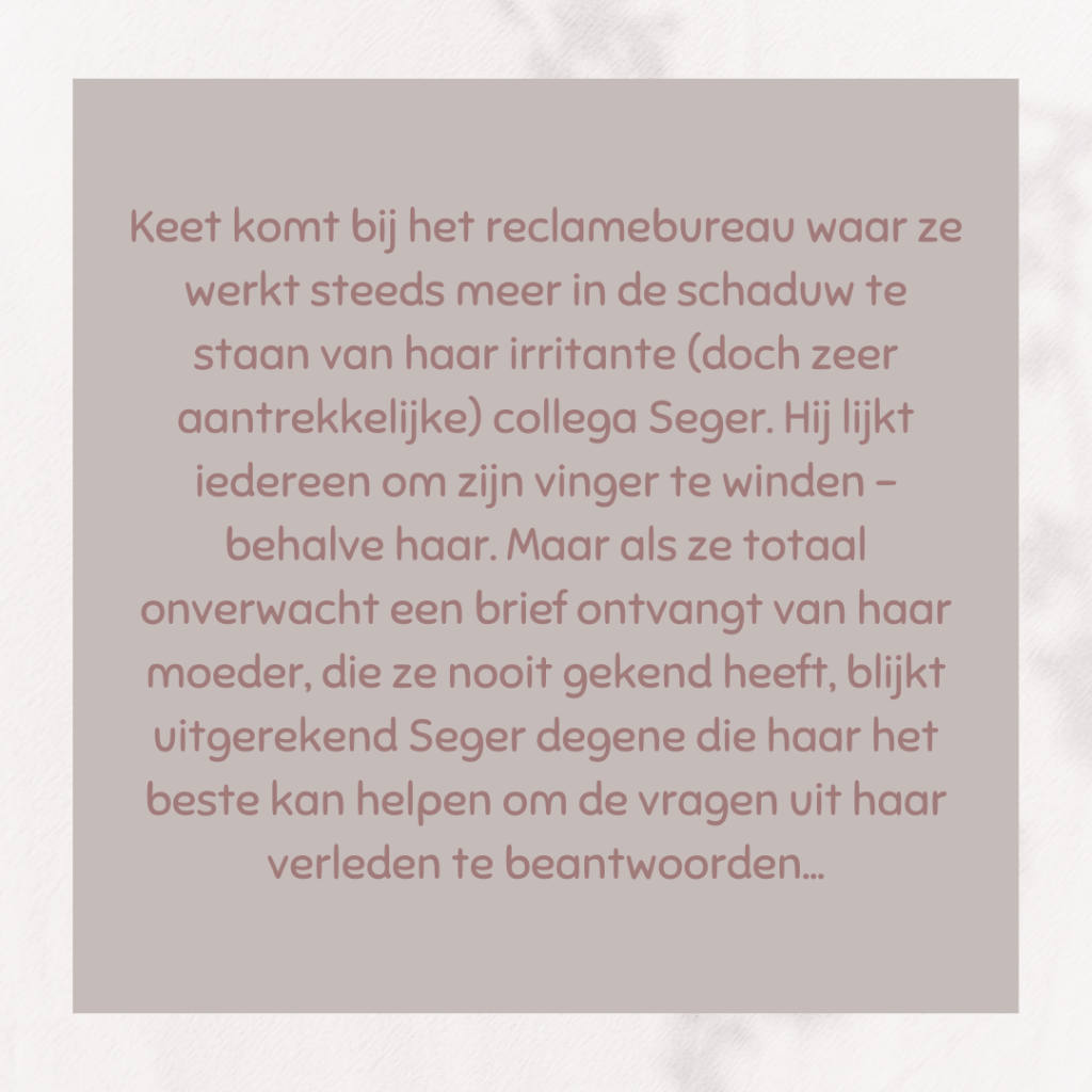 Dit verhaal is absoluut het lezen waard. Origineel, vlotte schrijfstijl, hedendaags, romantisch,… Ik heb ervan genoten.