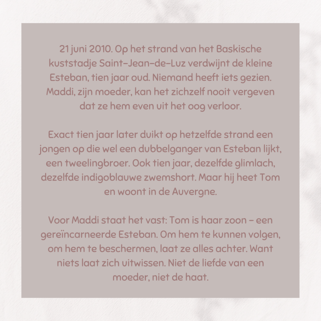 Op zijn tiende verjaardag verdwijnt Esteban tijdens een uitje naar het strand. Zijn moeder Maddi is in alle staten. Haar zoon is ontvoerd. De gendarmerie denkt eerder aan verdrinking. Wanneer het lichaam van Esteban vier weken later aanspoelt, is de zaak gesloten. Maar niet voor Maddi… Tien jaar later ziet ze op hetzelfde strand een jongen die als twee druppels op Esteban lijkt. Hij draagt zelfs dezelfde zwembroek. Maddi raakt geobsedeerd en duikt in een wespennest. Een wespennest dat haar leidt naar een dorpje in de Auvergne. Het dorpje waar de jongen woont…