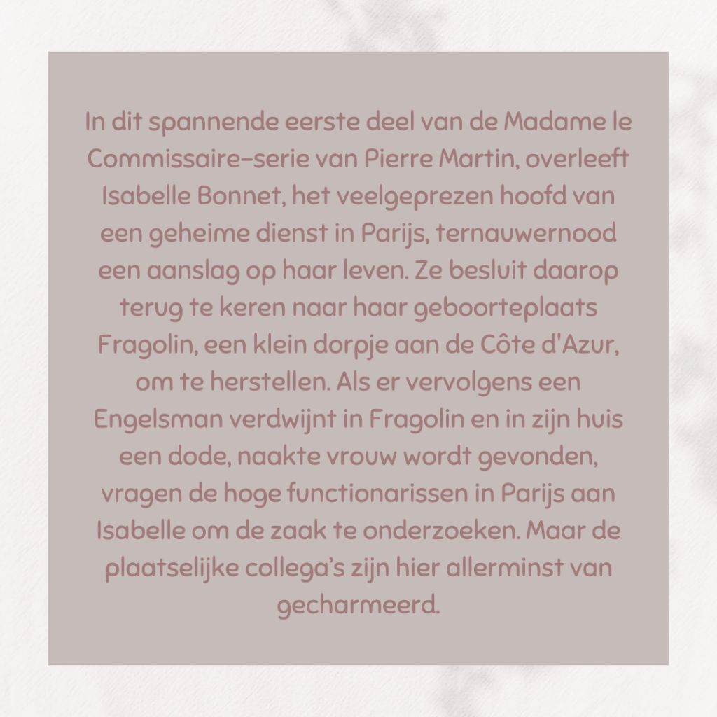 Een cozy crime met zowel spanning als de echte Franse sfeer. Dit eerste deel smaakt naar meer.