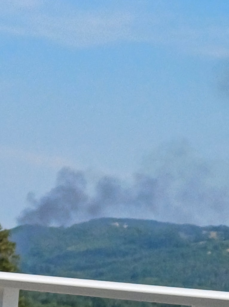 ’s Avonds zagen we dit. Dat zag er niet goed uit. Een bosbrand?