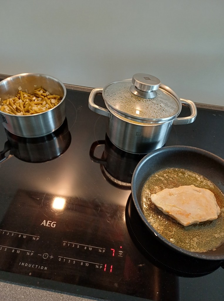 • AVG’tje: gekookte aardappelen, boontjes en kalkoenfilet.