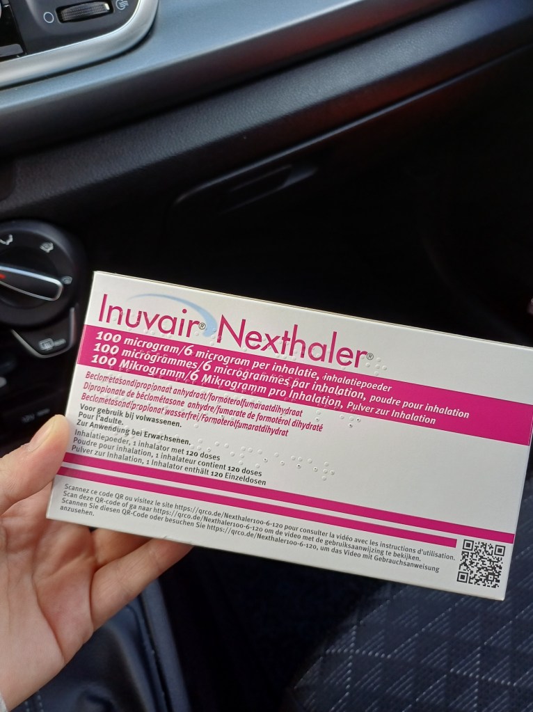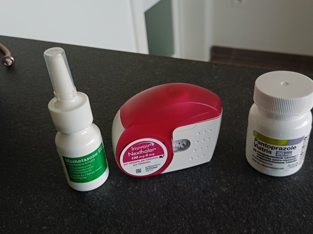 Ondertussen kaartte ik ook mijn chronisch kriebelhoestje aan. Eerst kreeg ik de Nexthaler voorgeschreven. Dit is een puffer. Na twee weken was er nog niet veel beterschap. Dan werd er ook een maagzuurremmer en neusdruppels voorgeschreven, aangezien de hoest ook kon komen van verborgen reflux. Kleine spoiler: helpt ook niets. De vervolgafspraak bij de huisarts is gemaakt.