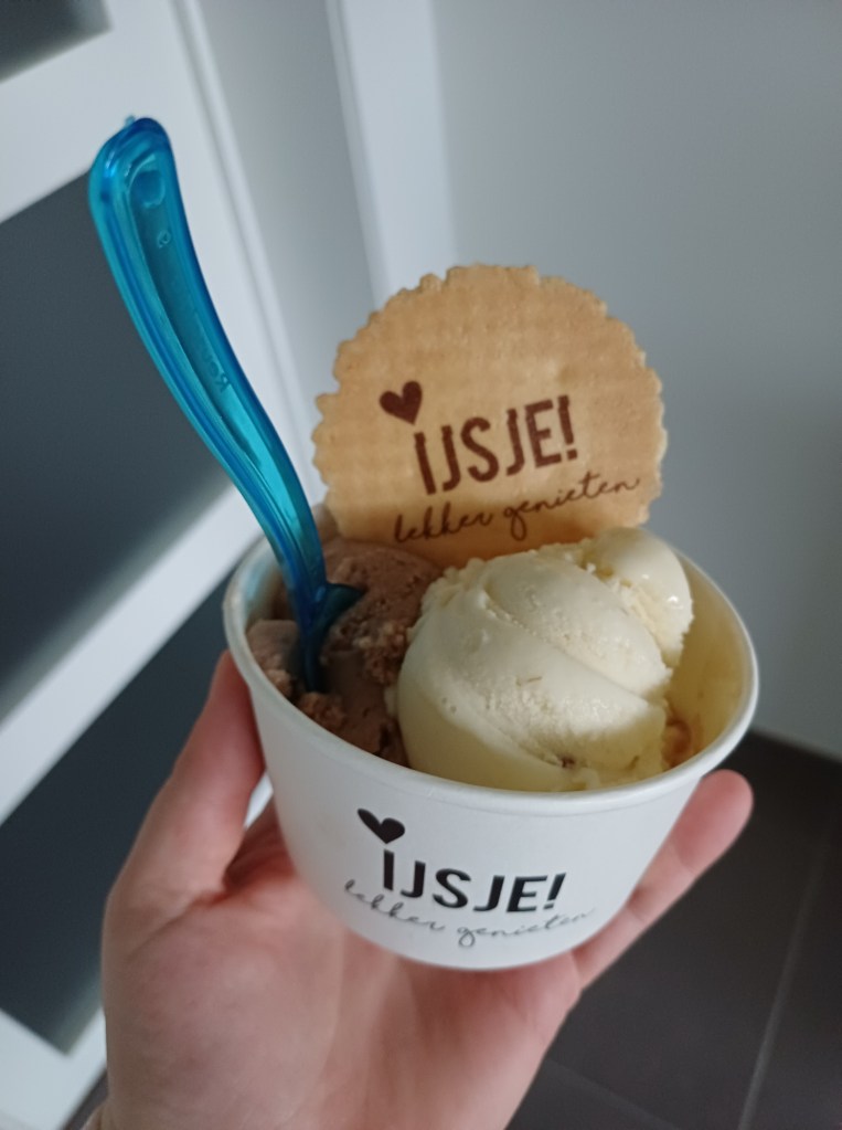 • Het laatste ijsje van het seizoen: chocolade en banaan.