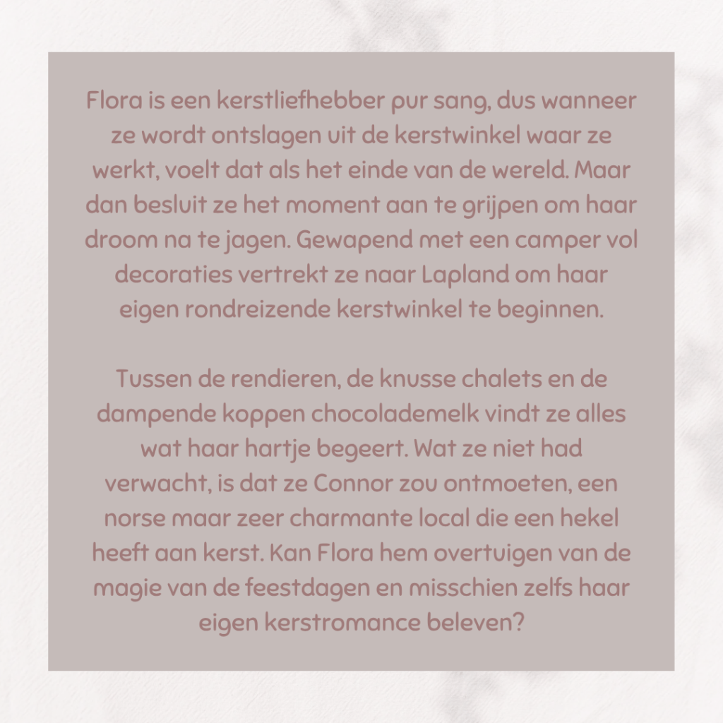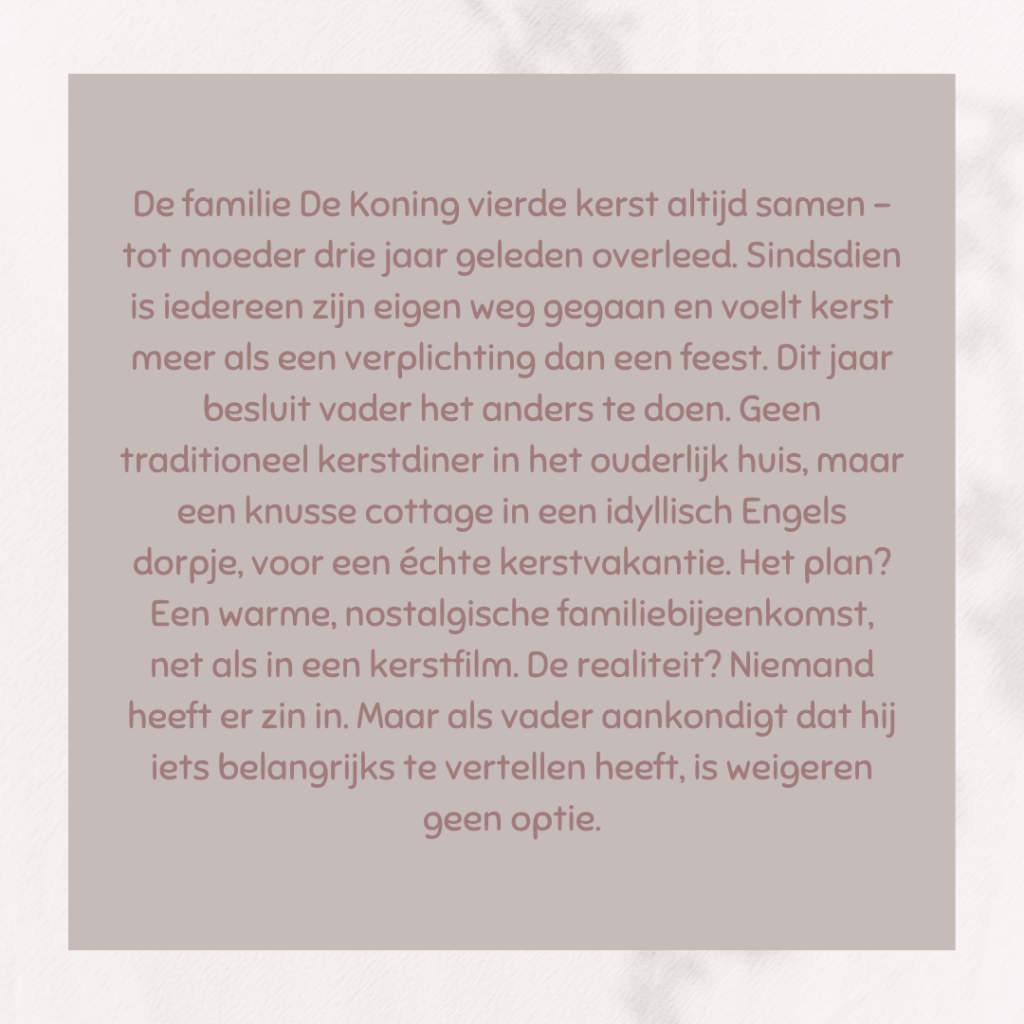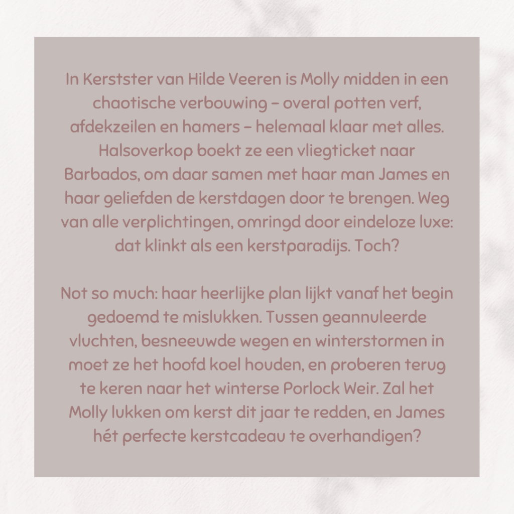 Wordt het een tropische Kerst of een koude, witte Kerst? Dat is de vraag bij dit cadeautje van Hilde Veeren. Na het verschijnen van het derde deel kreeg Hilde heel vaak de vraag of er nog een vervolg zou komen in deze hartverwarmende serie. Het werd een novelle. En wat was het een fijne novelle. Hartverwarmend, maar ook een beetje avontuurlijk. Is het voorspelbaar? Zeker, want ik had het plot al vanaf het begin door. Maar dat plot zorgt er wel voor dat er ooit een vervolg kan komen in deze serie en dat vind ik alleen maar leuk. 🥰