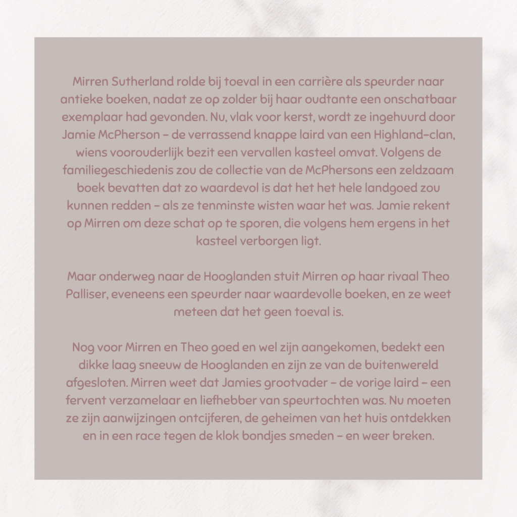 Fijne feelgoodroman met een vleugje avontuur. Men gaat op zoek naar een bijzonder boek door middel van aanwijzingen van de overleden grootvader. Een heuse speurtocht in een vervallen kasteel in Schotland.