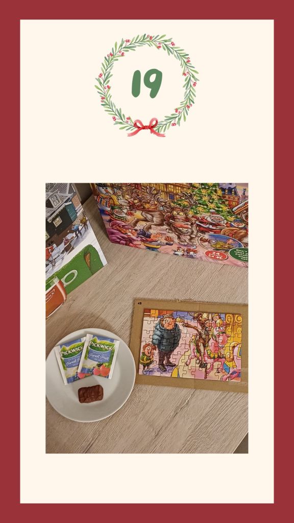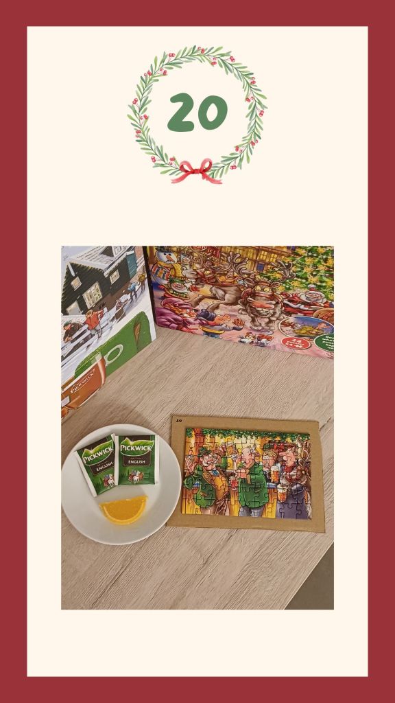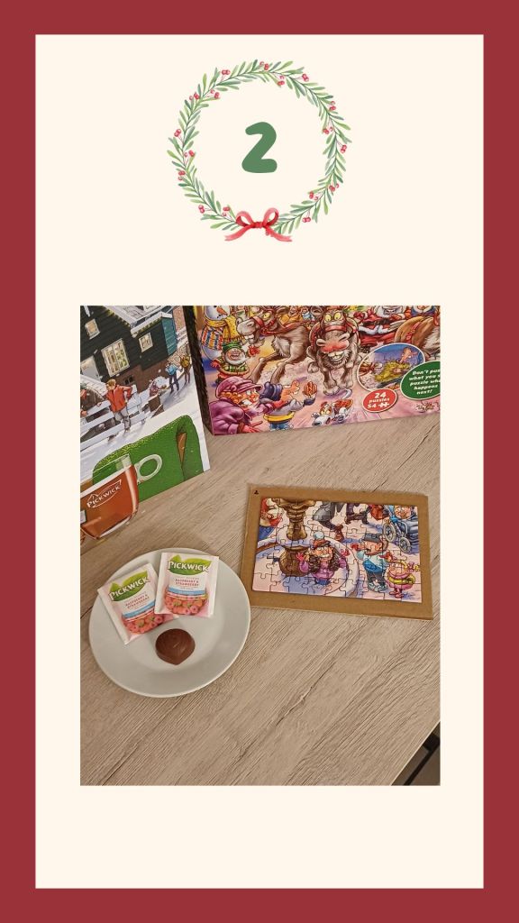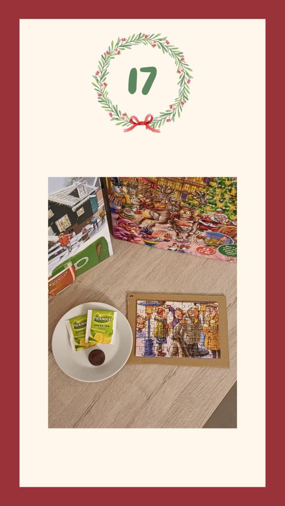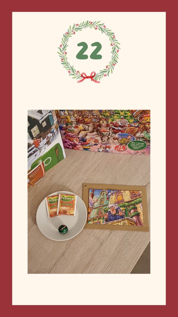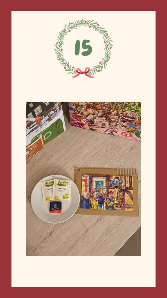 Ik vond het een geslaagde adventskalenderperiode. Ik heb veel plezier beleefd aan de puzzeltjes (zo’n 5 à 10 minuten per dag), heb nieuwe theetjes ontdekt (en ik ben erachter gekomen dat ik vruchtenthee lekker vind) en met chocolade kan er nooit iets mis gaan. De puzzelkalender en de theekalender zullen volgend jaar weer aangekocht worden. Al kan het zijn dat het dan wel een puzzelkalender van Jan van Haasteren wordt in plaats van Wasgij. 🙂