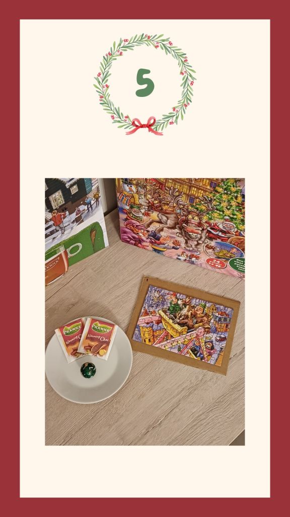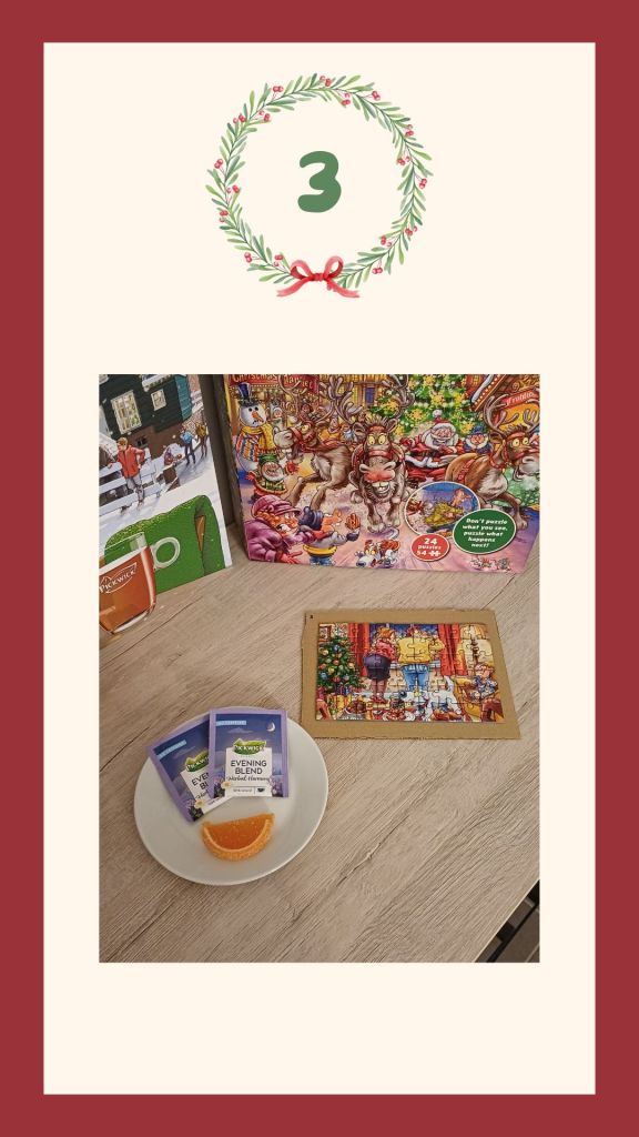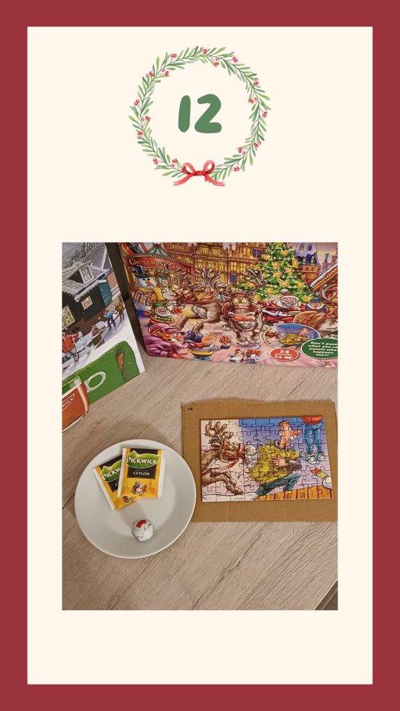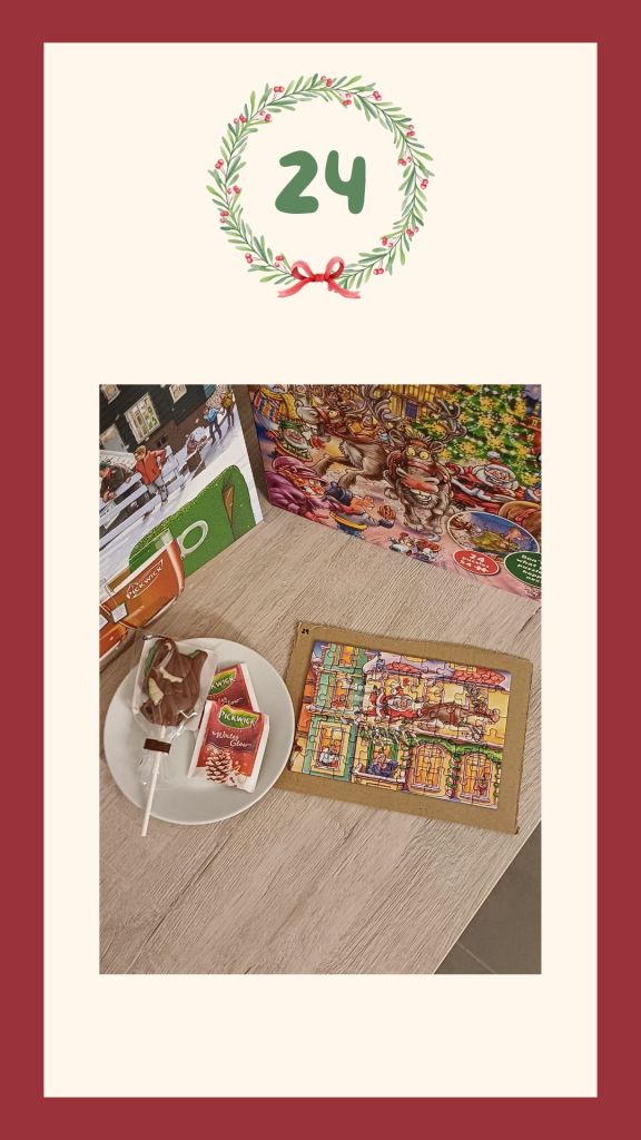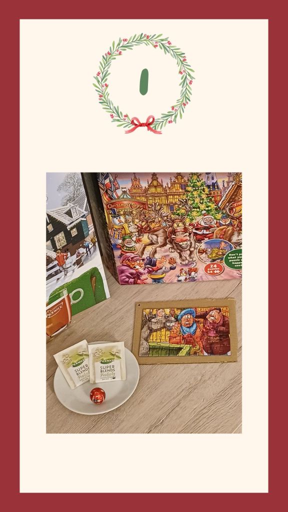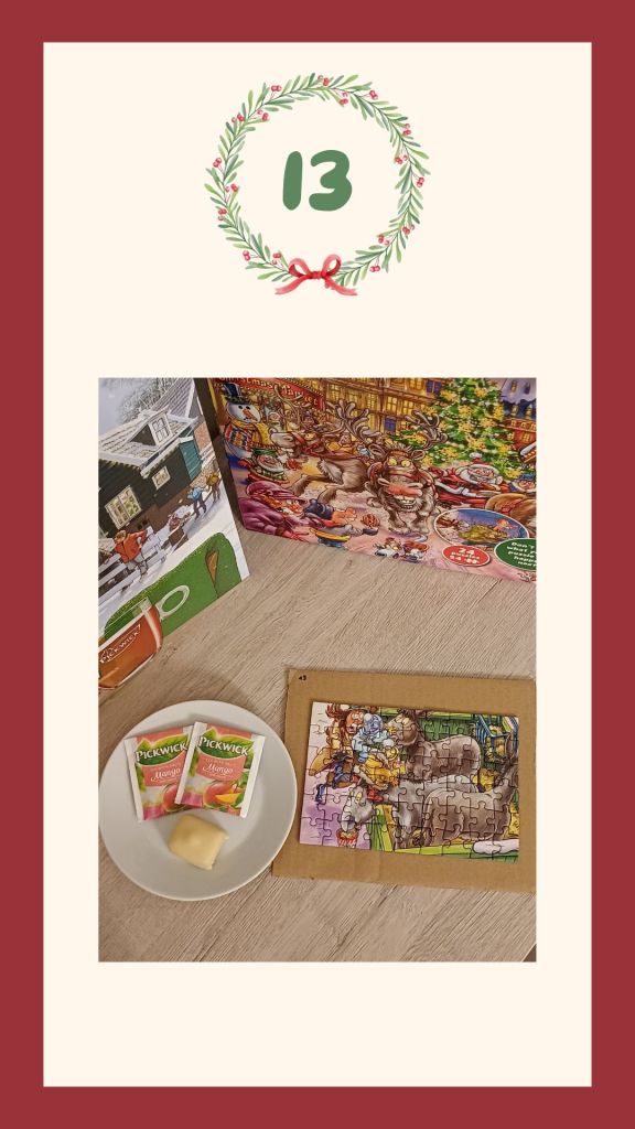 Ik vond het een geslaagde adventskalenderperiode. Ik heb veel plezier beleefd aan de puzzeltjes (zo’n 5 à 10 minuten per dag), heb nieuwe theetjes ontdekt (en ik ben erachter gekomen dat ik vruchtenthee lekker vind) en met chocolade kan er nooit iets mis gaan. De puzzelkalender en de theekalender zullen volgend jaar weer aangekocht worden. Al kan het zijn dat het dan wel een puzzelkalender van Jan van Haasteren wordt in plaats van Wasgij. 🙂
