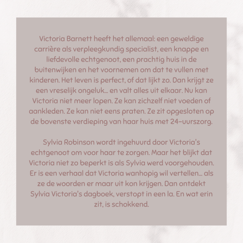 Het verhaal wordt traag opgebouwd. Met elk hoofdstuk maakt Freida McFadden je nieuwsgieriger naar het plot. Wat is er gebeurd? Wie spreekt de waarheid? Je weet dat er een plottwist aankomt, dus je bent op je hoede. Uiteindelijk is het Freida McFadden gelukt om me op het verkeerde been te zetten.