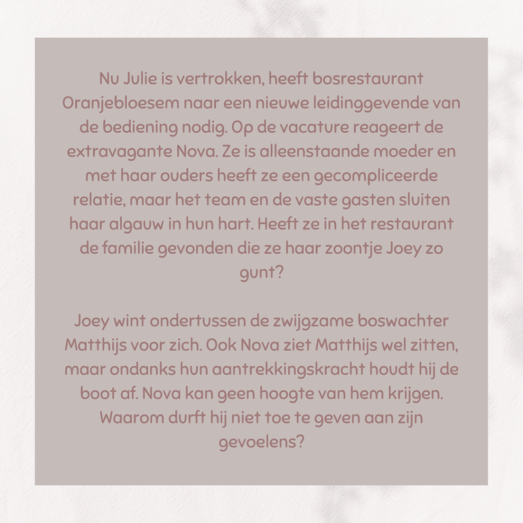 Het tweede deel is weer fijn om naar te luisteren. Het verhaal van De Oranjebloesem gaat verder en er worden twee nieuwe personages geïntroduceerd. Naast het liefdesverhaal, gebeuren er vreemde dingen in De Oranjebloesem waardoor Marieke een beetje spanning creëert. Wie zit hier achter?