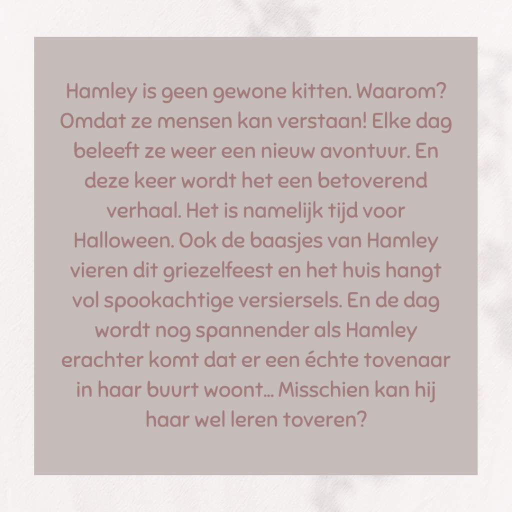 De avonturen van Hamley, het magisch zwarte katje, is een plezier om te lezen/luisteren. In dit nieuwe avontuur leert Hamley toveren bij een tovenaar. De brokjes die Hamley en haar kattenfamilie door hun baasjes voorgeschoteld krijgen, vinden ze niet zo lekker. Maar door een magische toverspreuk zou Hamley die vieze brokjes kunnen omtoveren naar brokjes met een lekkere smaak.