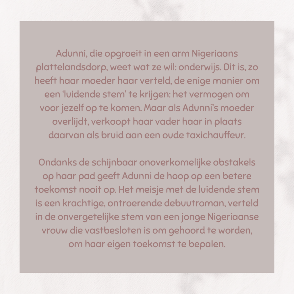 Het verhaal van Adunni is schrijnend. 14 jaar en al zoveel meegemaakt. Uitgehuwelijkt, misbruikt, gevlucht, afgeranseld,… Nochtans heeft ze maar één droom: naar ´de´ school gaan en een beter leven hebben. Helaas is dit nog steeds een droom voor vele meisjes.