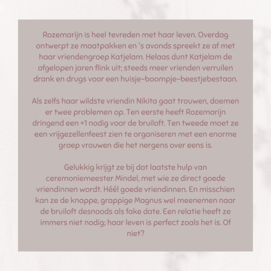 Het begin vond ik namelijk niet helemaal mijn ding. Ik sta zelf mijlenver van het hoofdpersonage Rozemarijn af. Feesten, veel drank en drugs… nooit gedaan en nooit gemist. Hierdoor had ik niet de neiging tot zelf verder lezen.