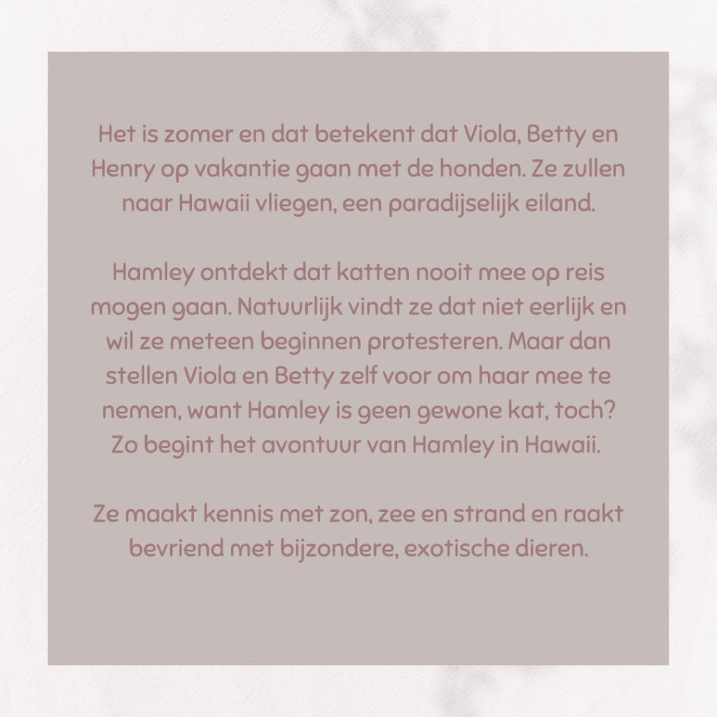 Stilletjesaan ben ik de Hamley-serie aan het uitlezen. Dit is zo´n fijne serie. Het is leerrijk, avontuurlijk en hartverwarmend. In dit boek gaat Hamley op reis naar Hawaii. En daar ontdekt zij andere diersoorten.
