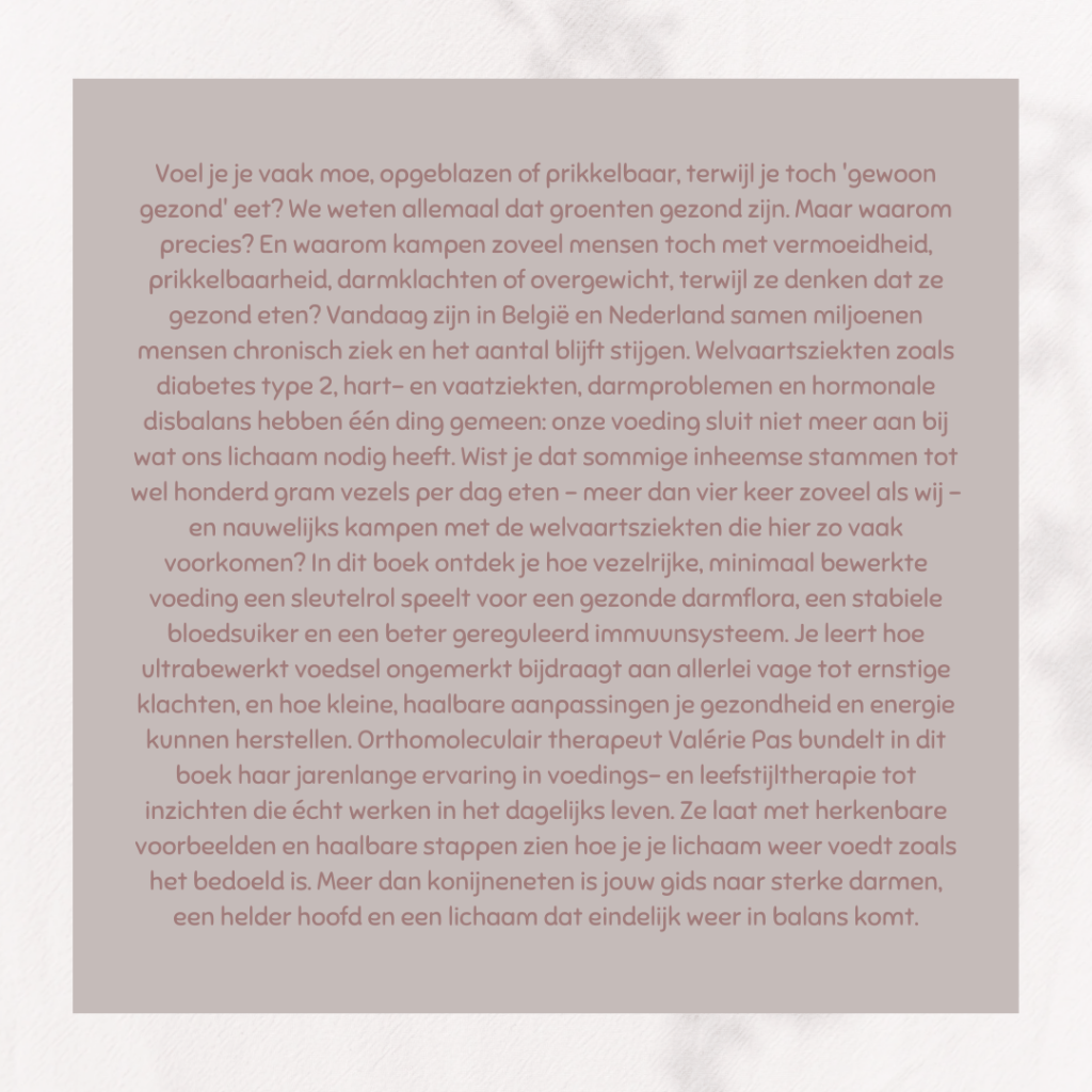 Met een soepele en toegankelijke schrijfstijl gidst Valérie je door de wonderlijke wereld van vezels. Er komen veel moeilijke woorden in voor, zoals namen van bacteriën en hormonen, maar die zijn niet van zo´n groot belang dat de werkelijke inhoud ermee verdwijnt. Je leest er eigenlijk een beetje over.